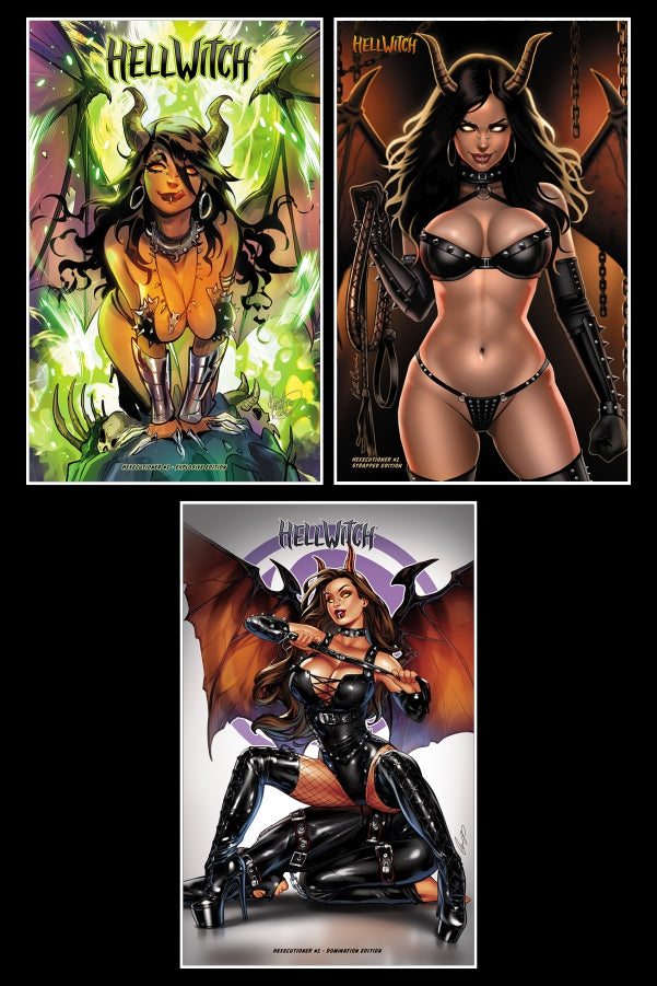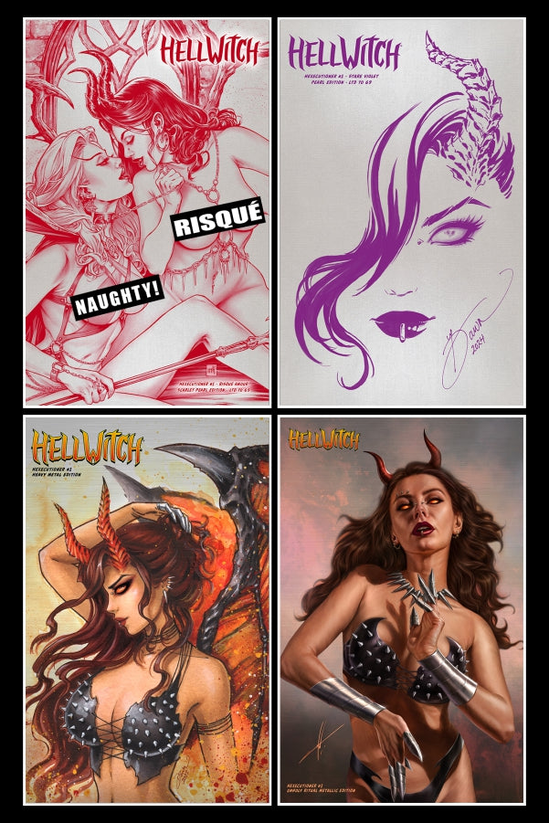 METAL COVERS ● Heavy Metal Edition (Dawn McTeigue) - Ltd to 99 Serially Numbered Copies ● Unholy Ritual Metallic Edition (Carla Cohen) - Ltd to 69 Serially Numbered Copies ● Shikarii Topless & Pierced Metallic Edition (Shikarii) - Ltd to 69 Serially Numbered Copies ● Risqué Glazed Metallic Edition (Sun Khamunaki) - Ltd to 69 Serially Numbered Copies